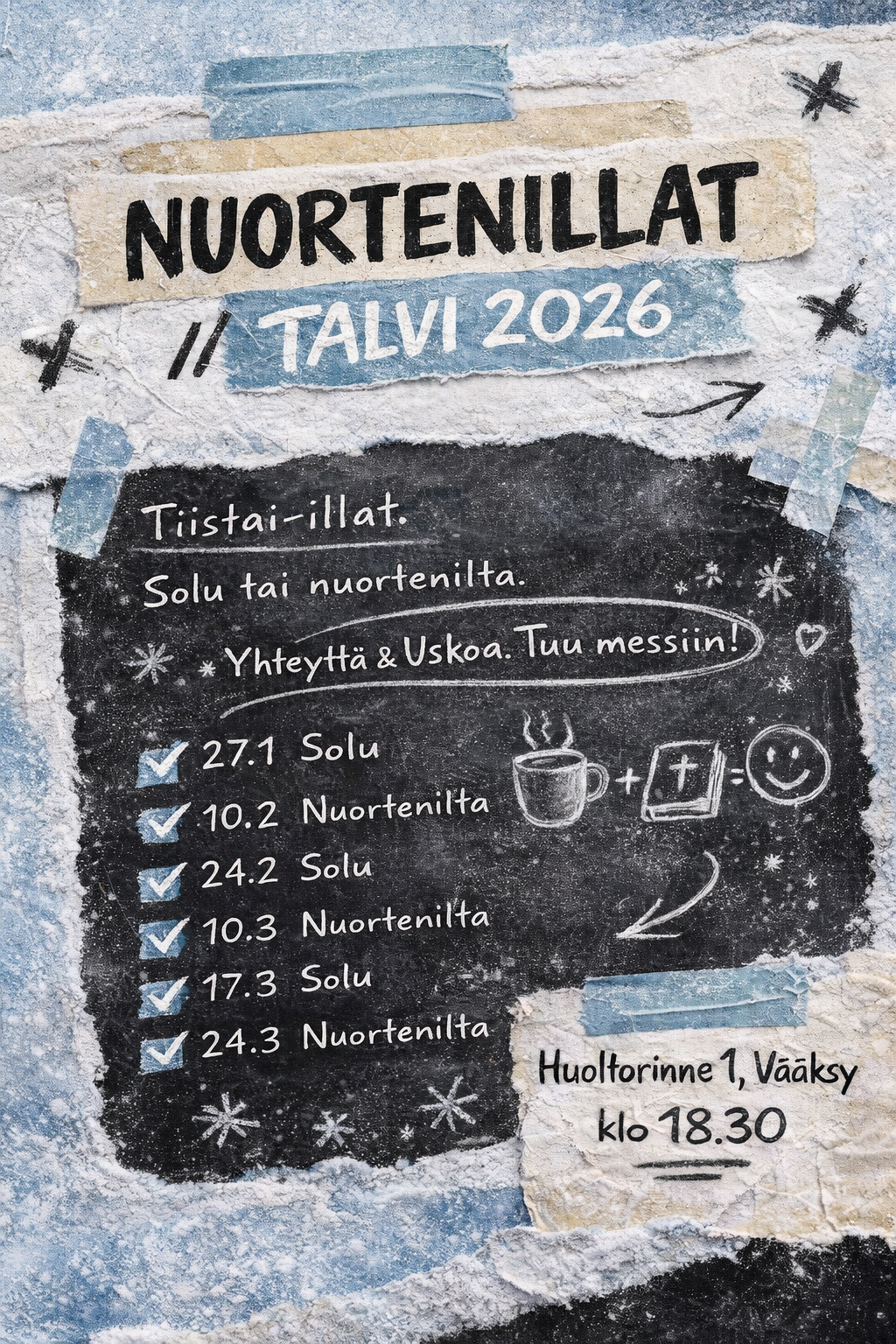 Klo 18.00 Naisten rukous- ja yhteysilta. Jenni & Katja H.