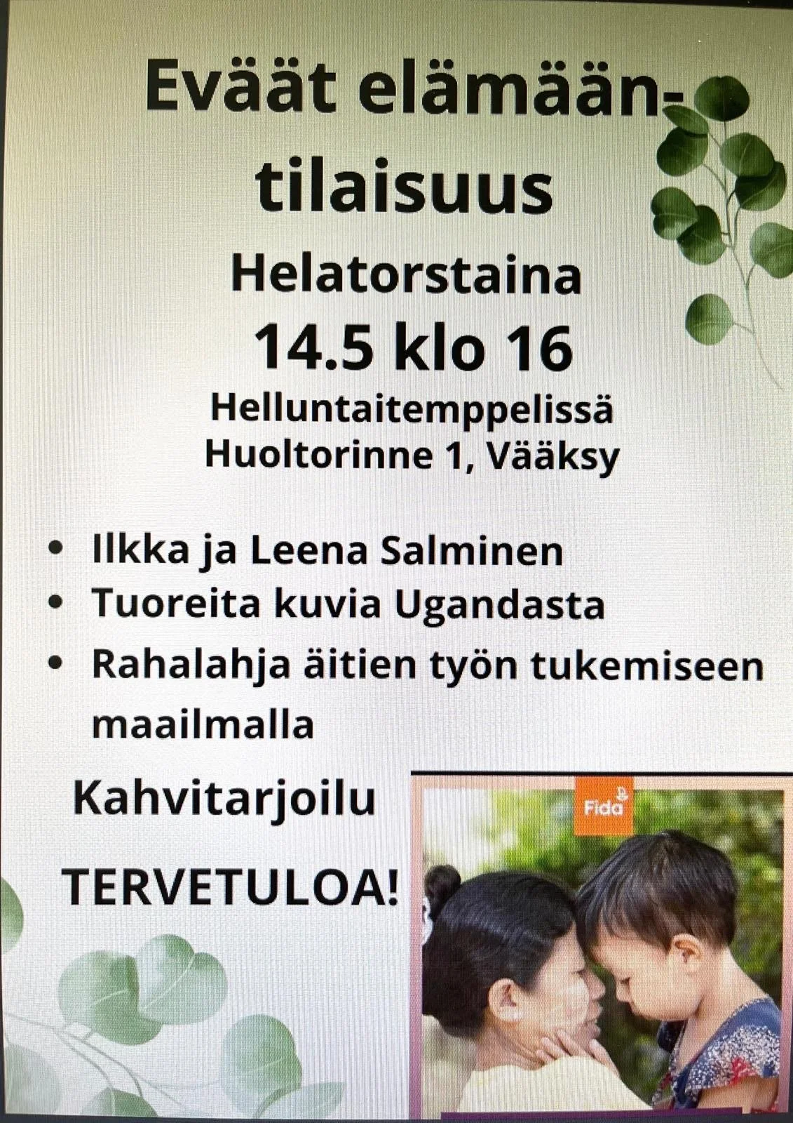 Vääksyn Helluntaiseurakunta haluaa viedä eteenpäin ilosanomaa Jeesuksesta. Tuemme lähetystyötä Sveitsissä sekä maahanmuuttajatyötä Suomessa ja Euroopassa. Lisätietoa tästä .